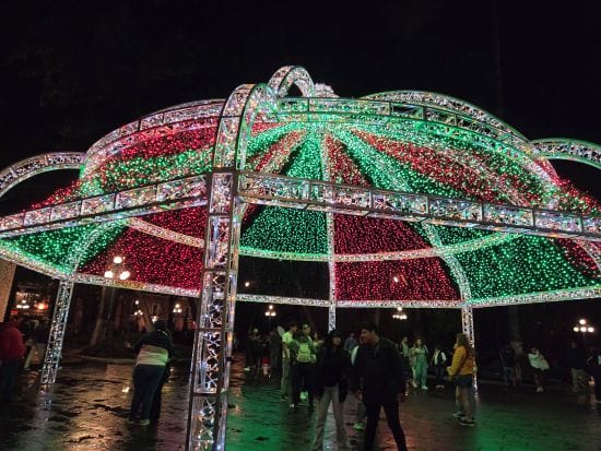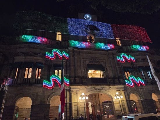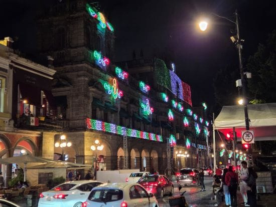 I visited Puebla's zócalo (main square) close to Mexico's Independence Day (September 16) to experience the festive lights set up for the celebration.